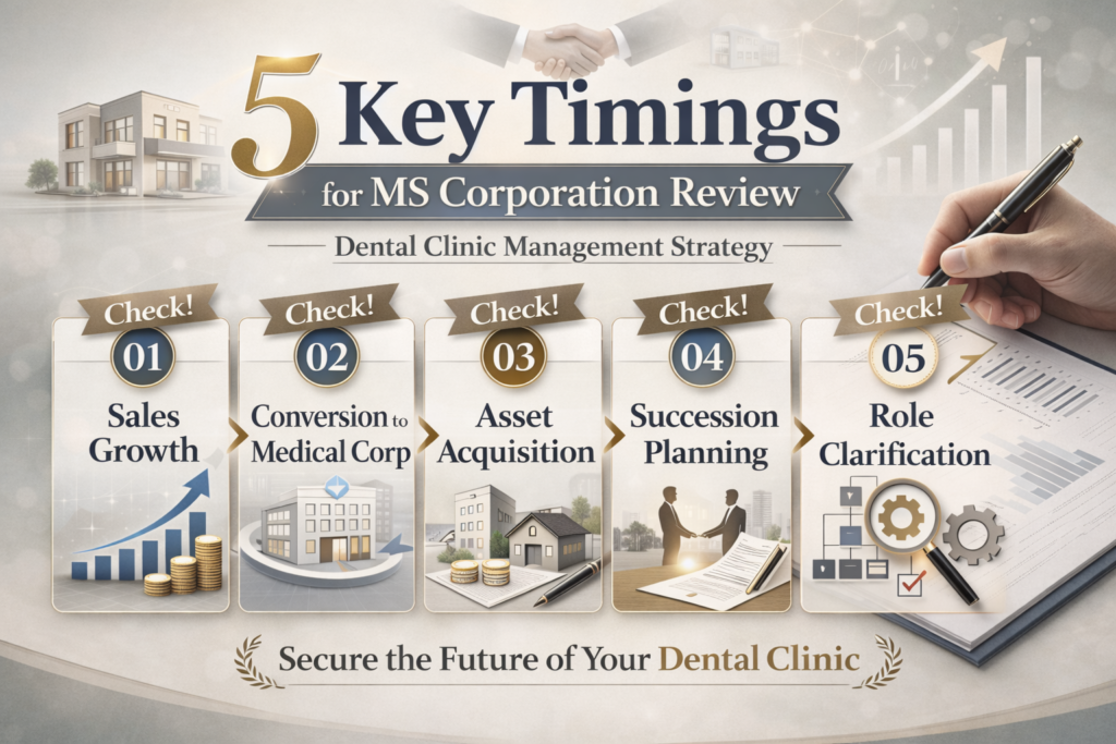 歯科医院がMS法人を見直すべき代表的な5つのタイミングを解説します。