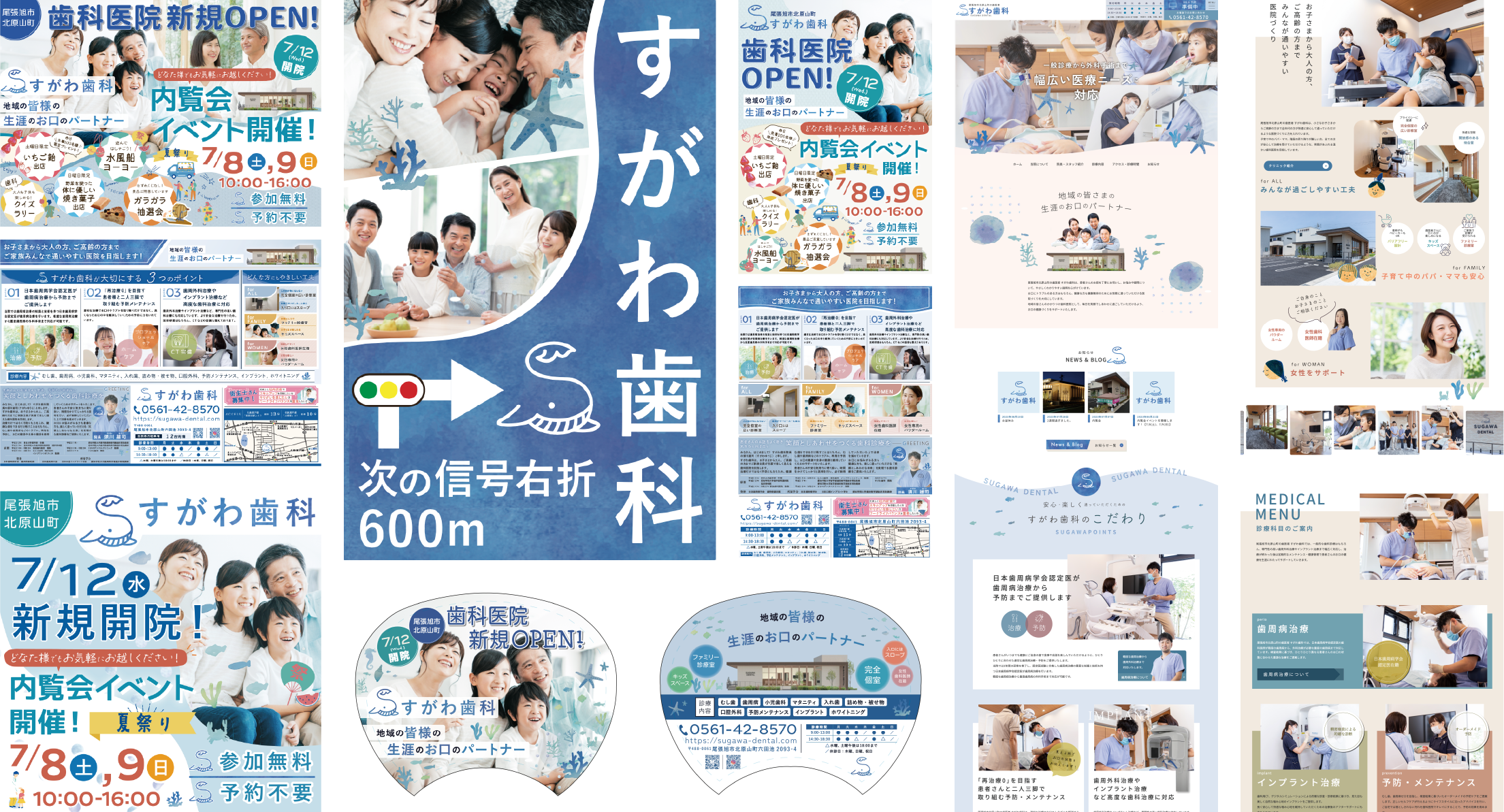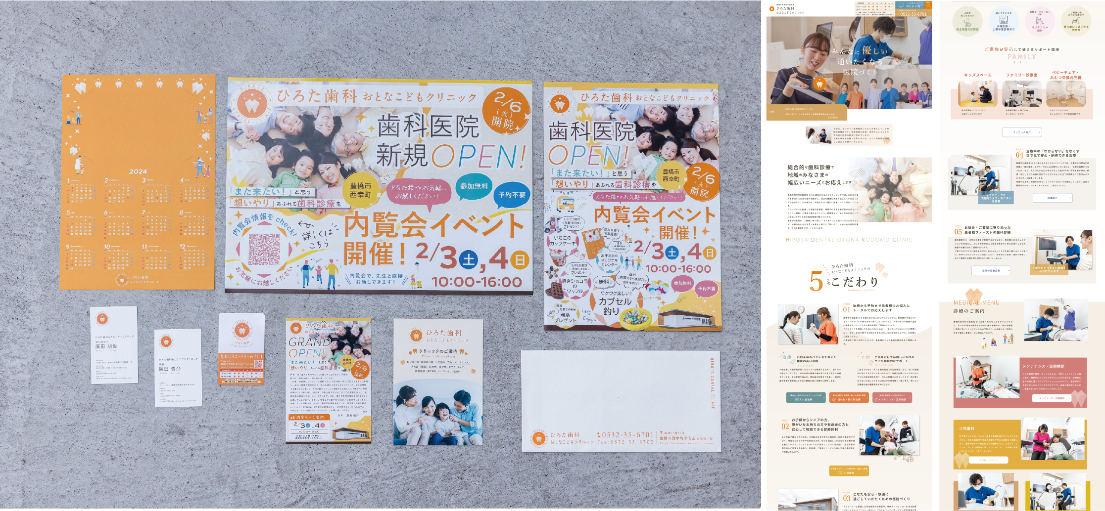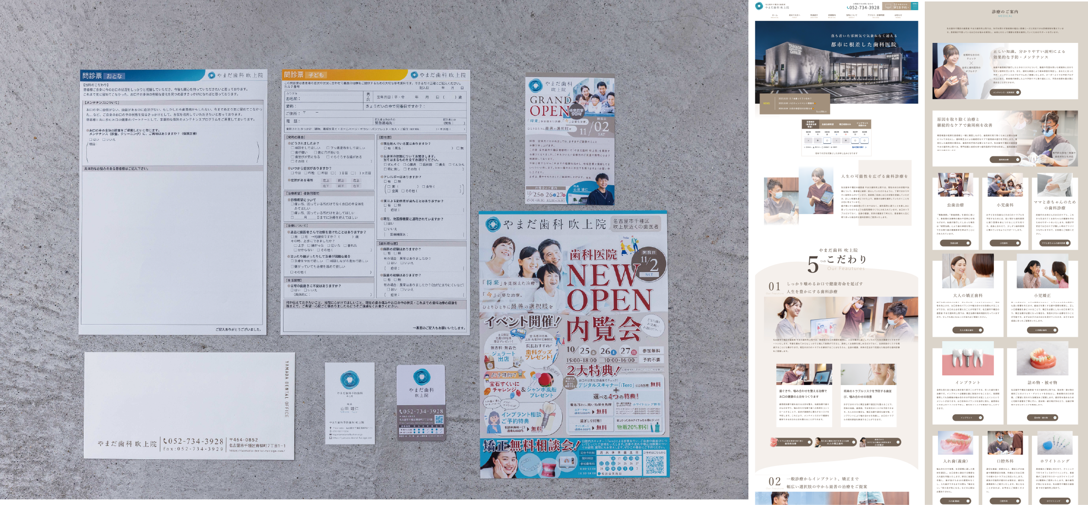 歯科開業支援の一環として、内覧会・WEBサイト・折り込み・ポスティングチラシ・ロゴ制作などを総合的にサポート。